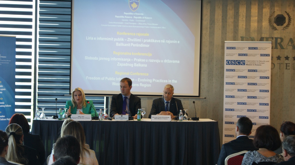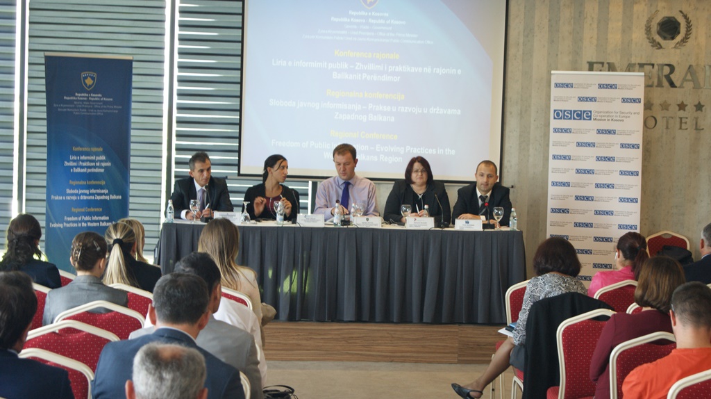 Në organizim të Zyrës për Komunikim me Publikun të Zyrës së Kryeministrit të Republikës së Kosovës, me mbështetjen e Misionit të OSBE-së në Kosovë, sot në Prishtinë është mbajtur Konferenca Rajonale: Liria e Informimit – zhvillimi i praktikave në rajonin e Ballkanit Perëndimor.