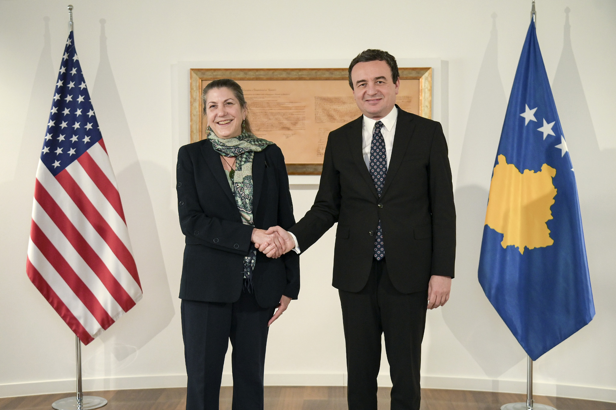 Premijer Republike Kosovo Albin Kurti zajedno sa Ministarkom ekonomije Artanom Rizvanolli poželeo je dobrodošlicu Pomoćnici administratora u Birou za Evropu i Evroaziju USAID-a, ambasadorki Elizabeth McKee i direktoru misije Jamesu Hopu, koji su bili u pratnji ambasadora Sjedinjenih Američkih Država na Kosovu, Jeffrey Hovenier.